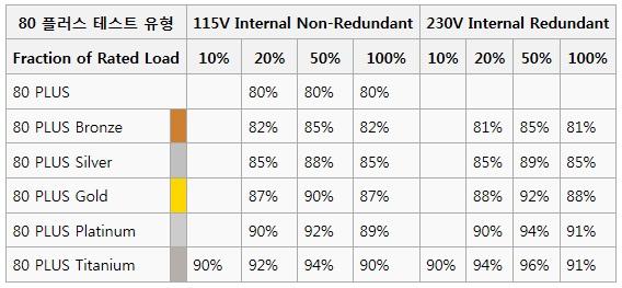 즉 효율이 높을수록 전력을 손실없이 잘 전달하여 발열이 줄어들고 소음도 줄어듭니다