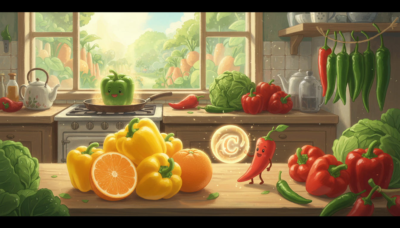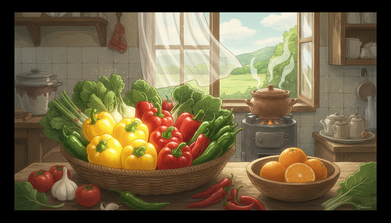 매운 고추와 피망 역시 놀라운 비타민 보고입니다. 풋고추의 비타민C 함량은 사과의 20배, 귤의 2~3배에 달합니다. 특히 고추에 들어있는 캡사이신 성분은 비타민C의 산화를 막아주는 역할을 하여, 다른 채소에 비해 조리 시 영양소 손실이 적다는 장점이 있습니다. 피망 또한 100g당 약 100mg 이상의 비타민C를 함유하고 있어 항산화 작용과 피부 미용에 매우 효과적입니다.