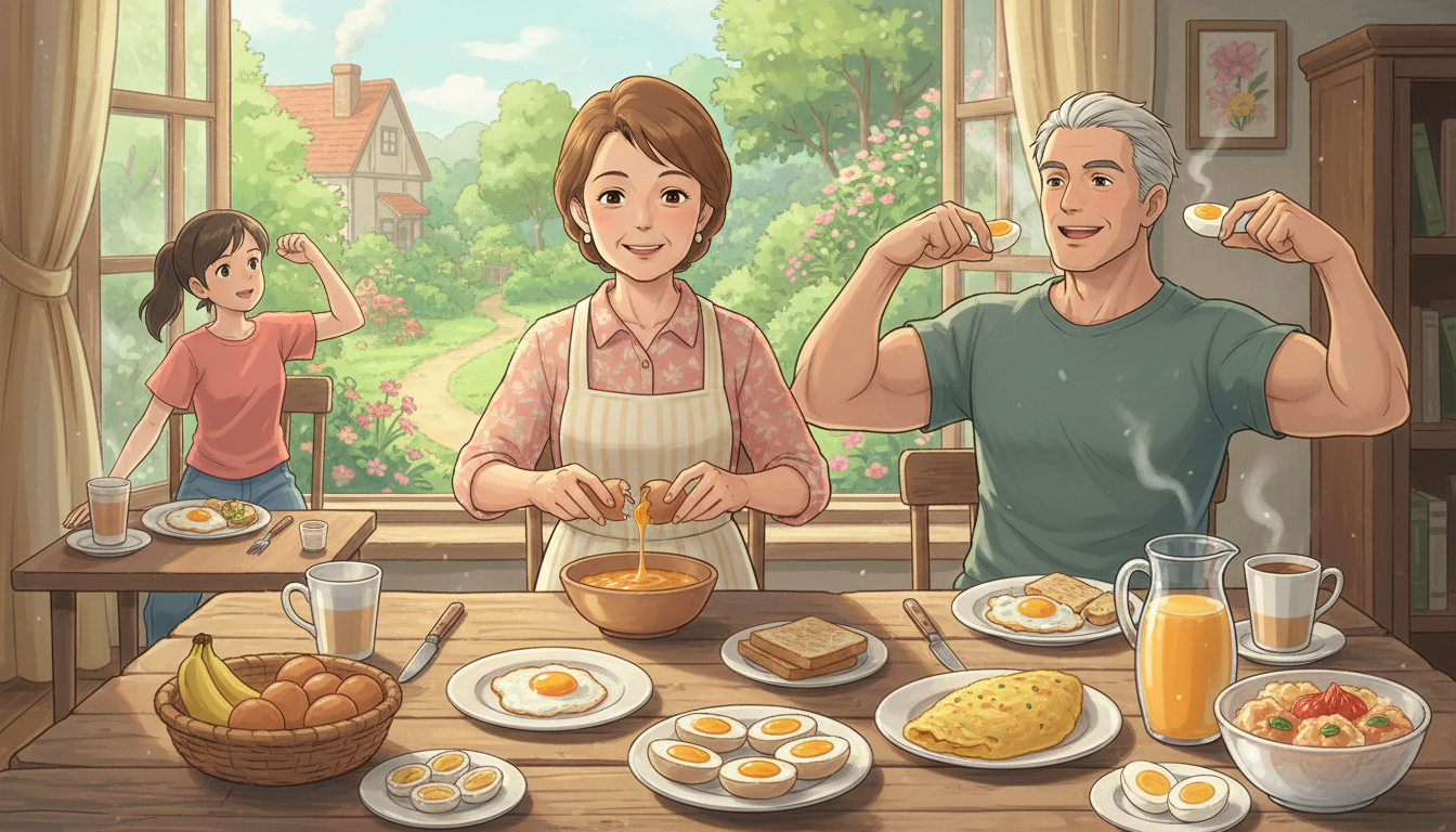 40대에 접어들면 노화와 호르몬 변화로 인해 매년 근육량이 급격히 줄어드는 근감소증 위험이 커집니다. 아침 식단에 계란을 포함하는 습관은 중장년층의 근육량을 유지하는 가장 경제적이고 확실한 방법입니다. 아침에 공급되는 양질의 아미노산은 하루 전체의 단백질 합성 효율을 높여줄 뿐만 아니라, 근육 세포의 재생과 회복을 도와 탄탄한 신체를 유지하는 데 핵심적인 역할을 합니다.